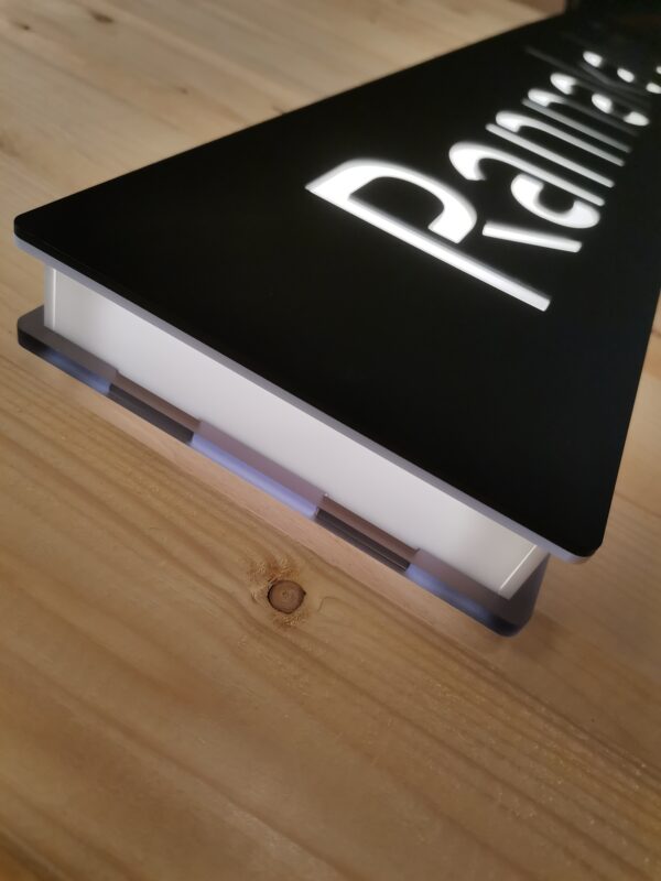 Standartsena on LED valgusti põhjana kasutuses 6mm läbipaistev pleksklaas.- sobib hästi heledamatele fasaadidele ja valgustab läbi äärte.